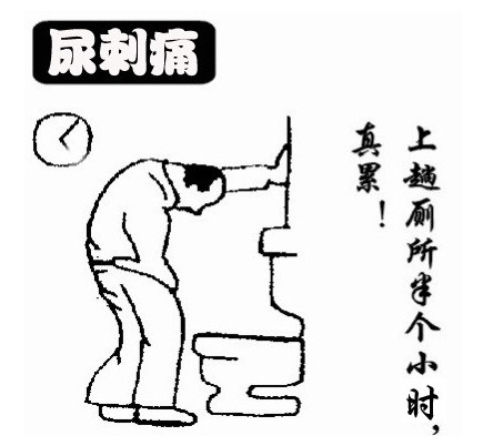 ②尿頻尿急與一般系被傳染類似,此因炎癥而導致尿道括約肌收縮,尿頻尿急以夜間為甚。另外,由于炎癥波及該處的粘膜小血管,還常發生終末血尿。有時可有血精。