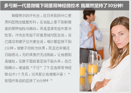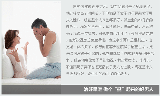 拆可視技術,安全性較高,但同時 對環境和醫生技術要求很高,否則 會造成人體損傷,同時治療早泄有 局限性,并不適用所有早泄患者。