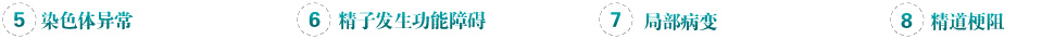 染色體異常,常見的有男性假兩性畸形、Klinefelter綜合征和XYY綜合征,46XY/47XXY等染色體異常致睪丸生精障礙。