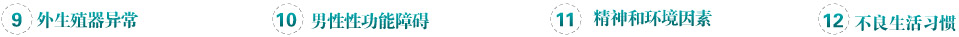 不良的生活習(xí)慣和工作因素 長期穿緊身褲、嗜煙和酗酒、接觸有毒物質(zhì)、頻繁的熱水浴、房事不當(dāng)或過頻、經(jīng)常長途和過度勞累地騎自行車和放射線損害等。